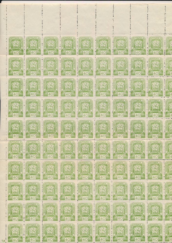 4398 nh imageCarpathians, 1945, 6 (1000x), 7 (90x), 8 (100x) and 9 (100x), "Coat of arms" in sheets and sheetlets, gum is slightly spotty as usual, vf/f (Yv. €10,350)(Image 1) (Image 2) (Image 3)