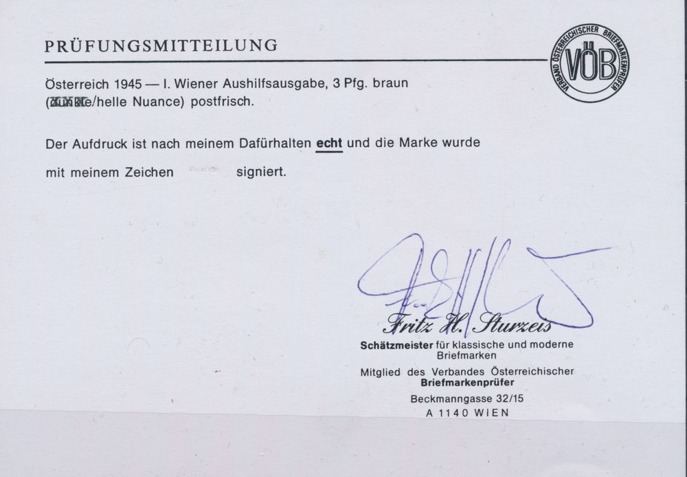4400 nh imageN° IVa '1945 Hitler with overprint 3 Pf dark brown' with certificate, vf (Mi €100)(Image 1) (Image 2)