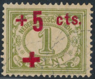 4392 0 imageNo 135 fa "Red Cross 1 ct + 5 ct olive green", with strongly shifted overprint, nice stamp with 1 thin perf, rare (Cat. 1,000).(Image 1) (All Images)