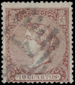 N° 82 "1866 - Isabella II - 19c. brown", vf (Yv. €475)(Image 1)