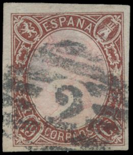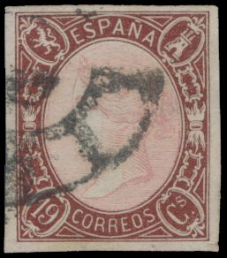 N° 68 '1865 Isabella II 19c brown and pink' small cut