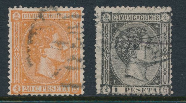 N° 156 and 160 "1875 - Alphonso XII - 20c. orange" and "1p.