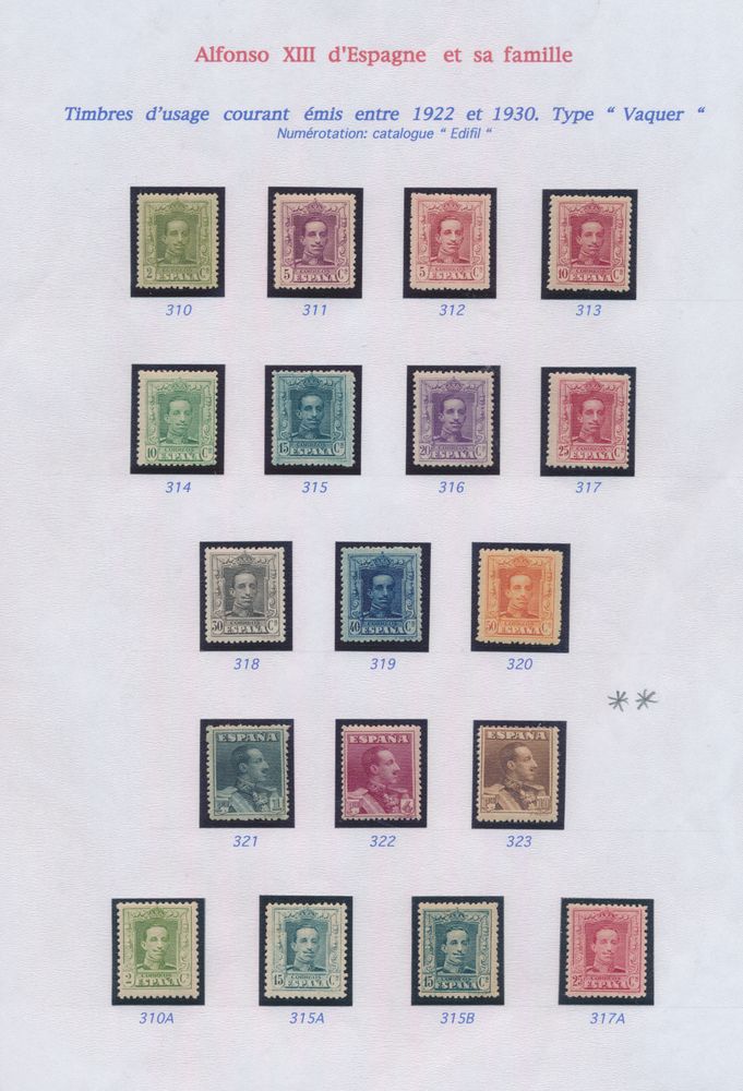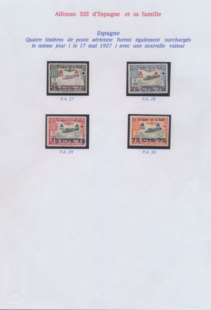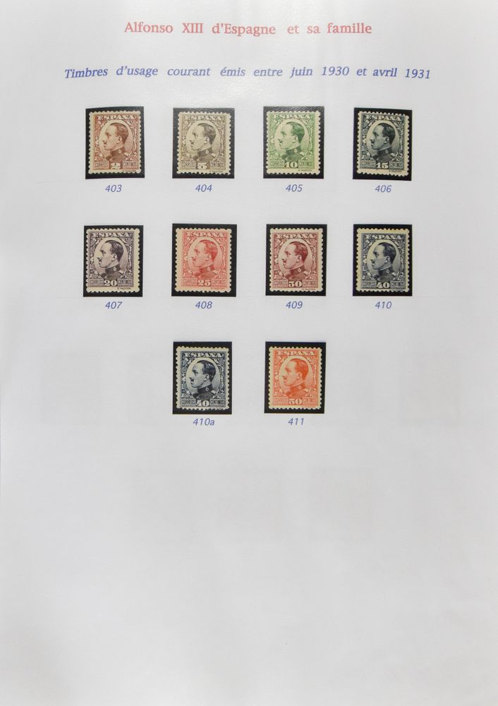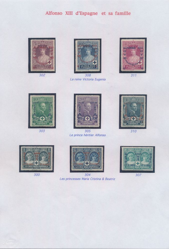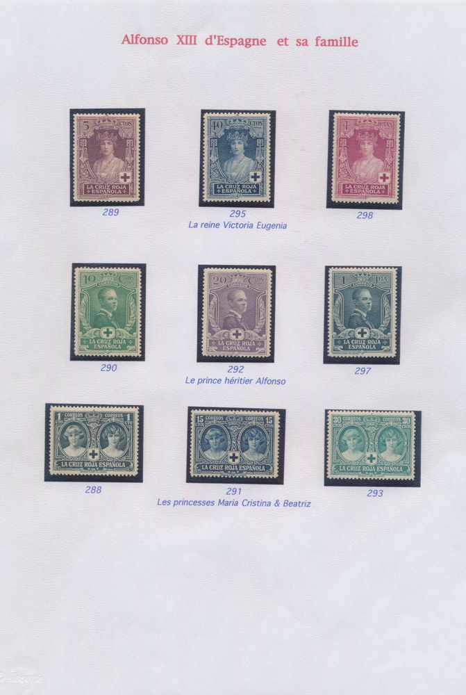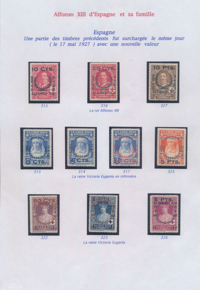 4555 nh image1922/1927 Collection of Alfonso XIII and his family on sheets, including set of 1922/30 (without the 25 blue) with certificate for "4p." and "10p.", 1926 Red Cross and 1927 overprints, vf.(Image 1) (Image 2) (Image 3) (Image 4) (Image 5)