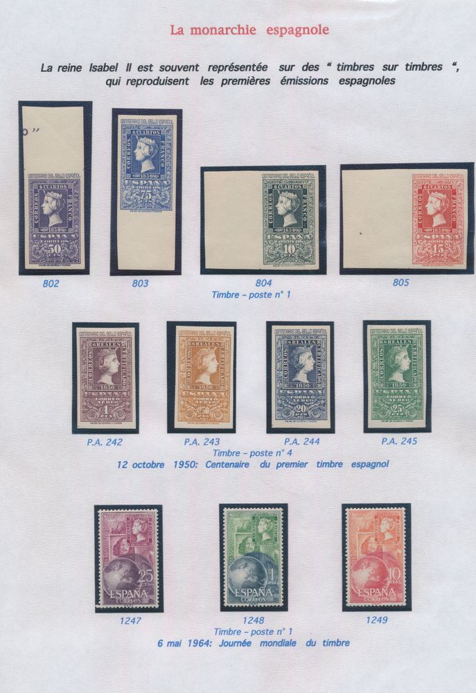 4544 nh image1950 "100 years of Spanish postage stamps - both sets", Yv. n° 802/805 and LP 242/45, n° 802 very slight crease in top page border, vf (Yv. €700)(Image 1) (All Images)