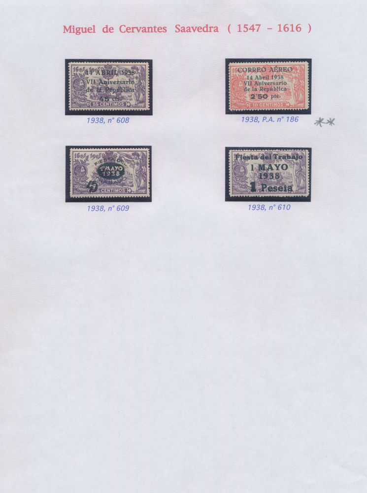4547 nh imageLP 186 "1938 - Don Quixote" with overprint, sign Diena, vf (Yv. €175)(Image 1) (All Images)