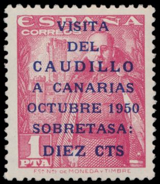 4545 nh imageN° 806A/807A "1950 - Caudillo a Canarias 16 1/2mm", "1pta" sign Roig, vf (Yv. €500)(Image 1) (Image 2)