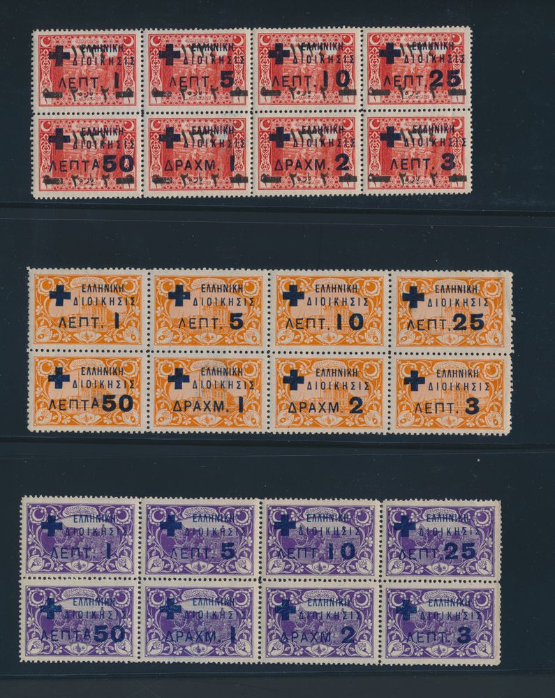 4581 nh image1916/1921 stamps Turkey with private overprint in Greek, (3 souvenir sheets of 8) in different colours (each with different surcharged values), vf.(Image 1) (All Images)