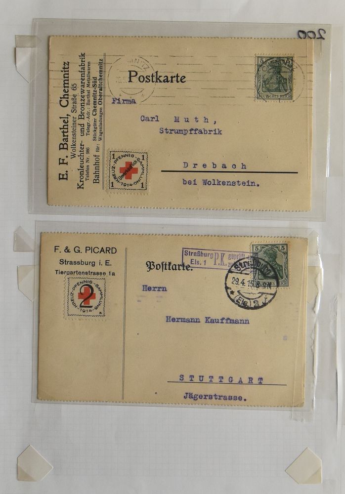 4647 bl image1914/1918 Alsace-Lorraine "Kreuzpfennig" for the Red Cross, 6 postal items with reference Frick, vf(Image 1) (Image 2) (Image 3) (Image 4)