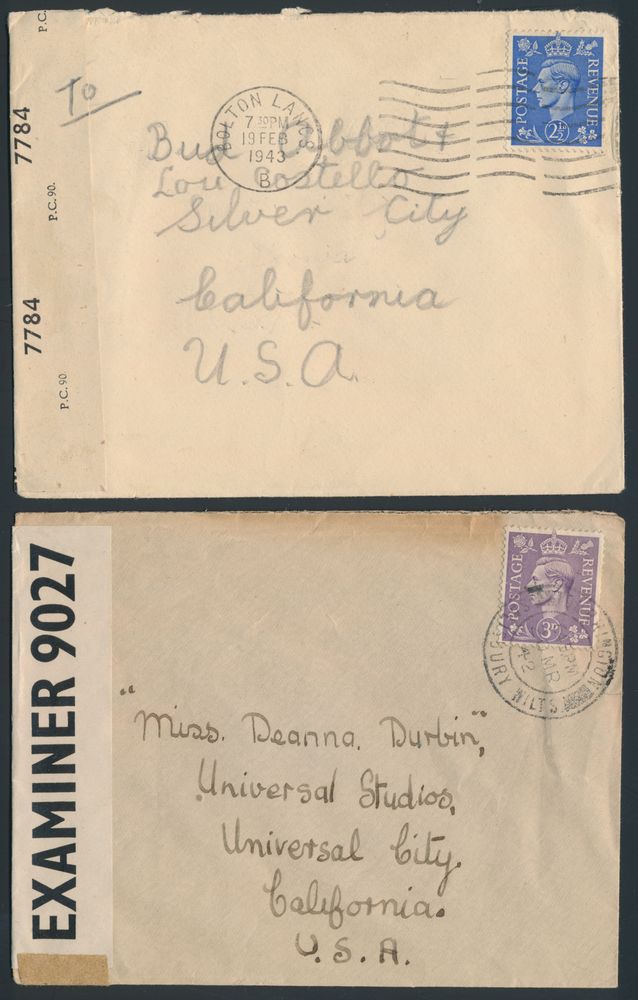 4648 image1914/1915 Ca. 170 censorship papers almost all from and to England including huge number sent to film stars such as Deanna Durbin, Robert Stack, Albbott and Castello, interesting, vf/f/to be checked(Image 1) (Image 2) (Image 3) (Image 4) (Image 5) (Image 6)
