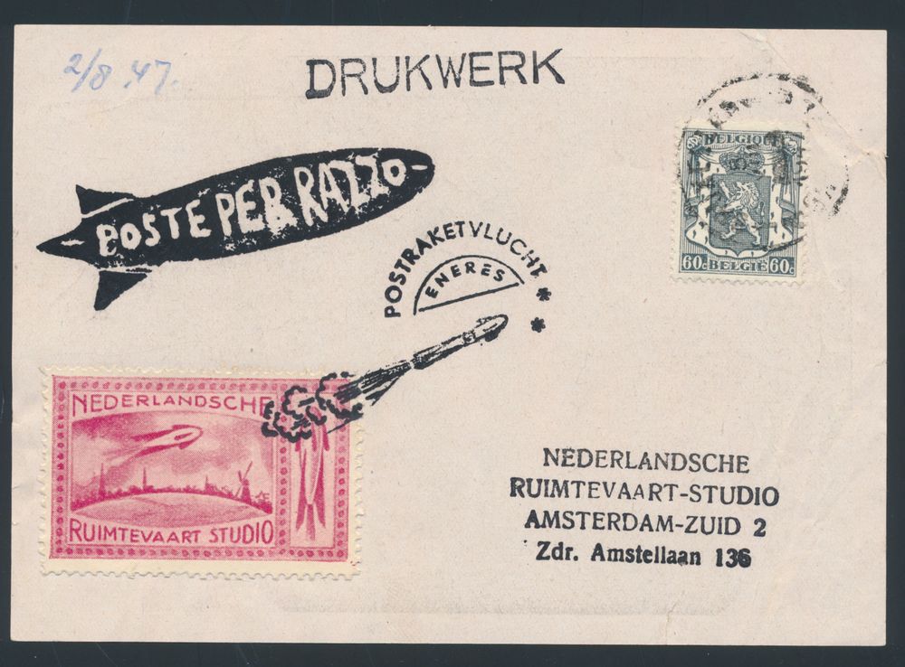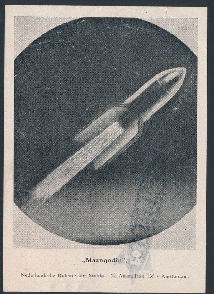 4658 imageRUIMTEVAART : Dutch Space Post Rocket flight, with vignette (printed matter) with "Moon Goddess" (from the studio - Amsterdam) on the reverse, vf(Image 1) (Image 2)