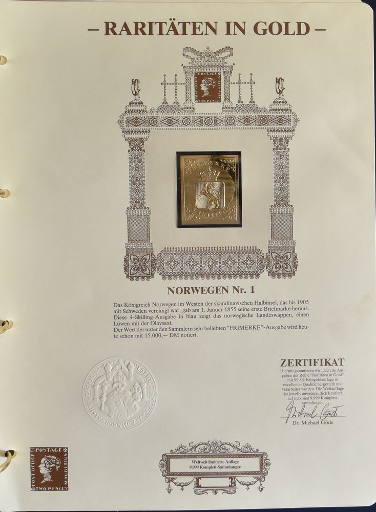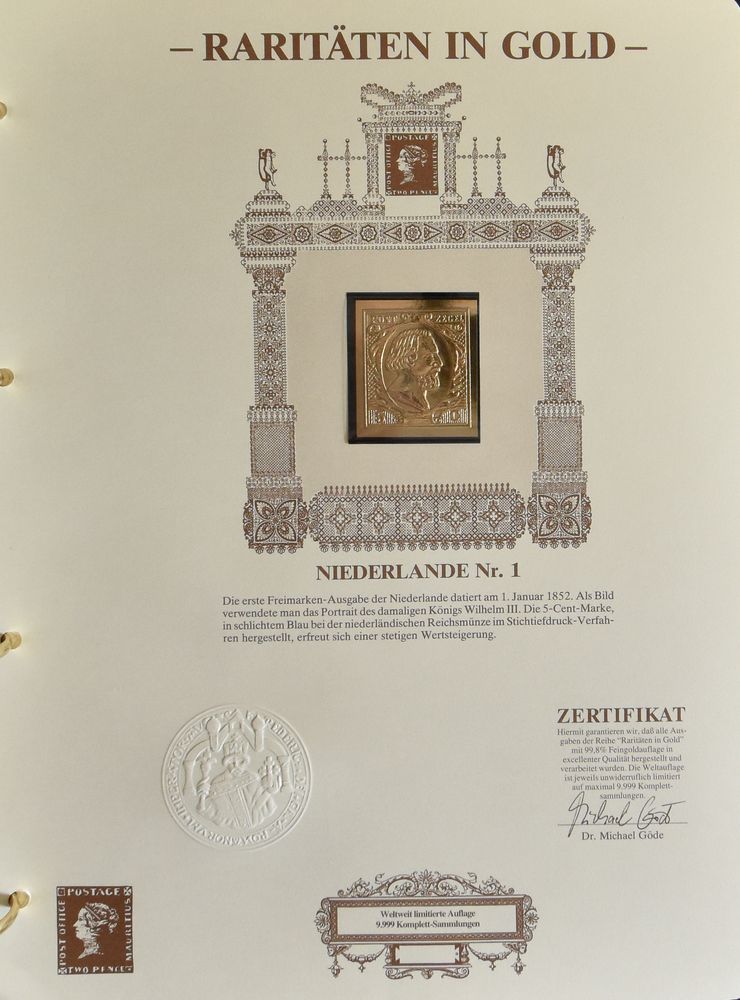 4661 nh imageGOLDEN SEALS : from the 1° issue (reproduction) a.o. Mauritius, Netherlands, Spain, Portugal, in special album, vf(Image 1) (Image 2) (Image 3)