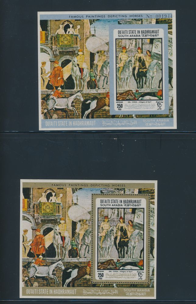4654 nh imageBACKGROUND: Collection in 2 stockbooks, of Gulf states including quite a few gold and silver stamps, vf.(Image 1) (Image 2) (Image 3) (Image 4)