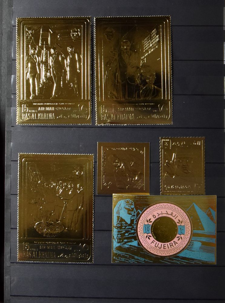 4653 nh imageBEROOMED PERSONS : Gulf states perforated and imperforated, in stockbook, also gold and silver stamps, very high cat. value.(Image 1) (Image 2) (Image 3) (Image 4)