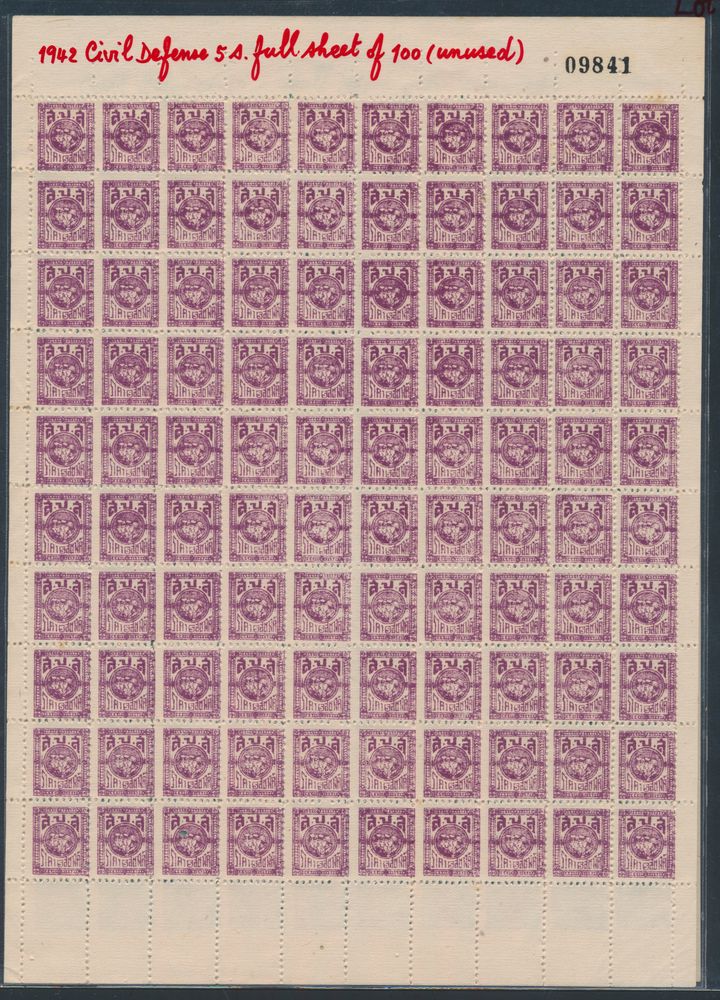 4764 nh image1942 "Civil defence 5 S red violet and 10 S green" (Full sheets of 100), vf.(Image 1) (All Images)