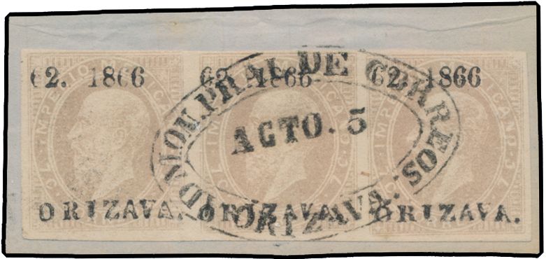 4783 0 imageN° 24 "1866 - Emperor Maximilian - 7c. grey lilac", strip of 3 on fragment with control number, vf (Yv. +€480)(Image 1) (All Images)