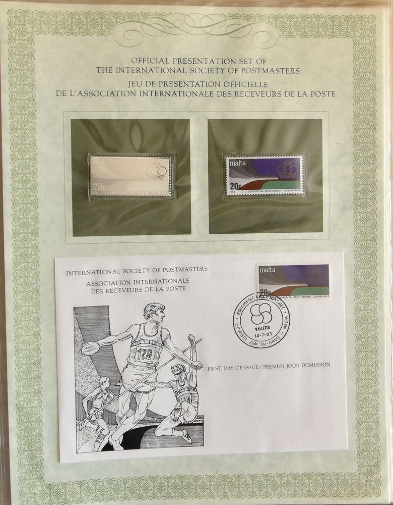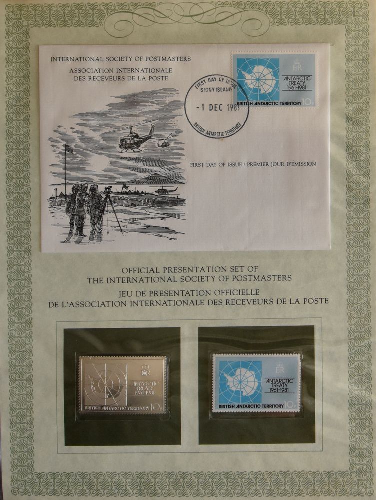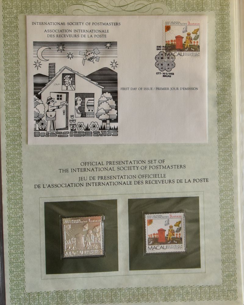 4846 MIX imageCollection "International Society of Postmasters 1981", in album, 36 sheets each with a ** stamp, FDC, silver stamps and description, vf(Image 1) (Image 2) (Image 3)