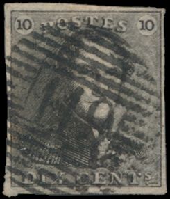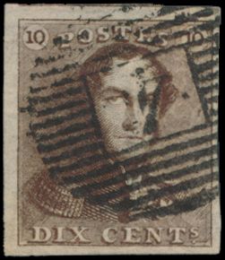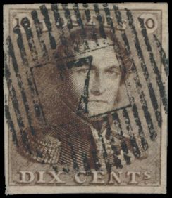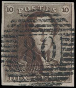 675 0 imageN° 1d "10c. sepia-brown", fully margined, with fine margins, cancelled P.4-Anvers, vf (OBP €100)(Image 1) (All Images)