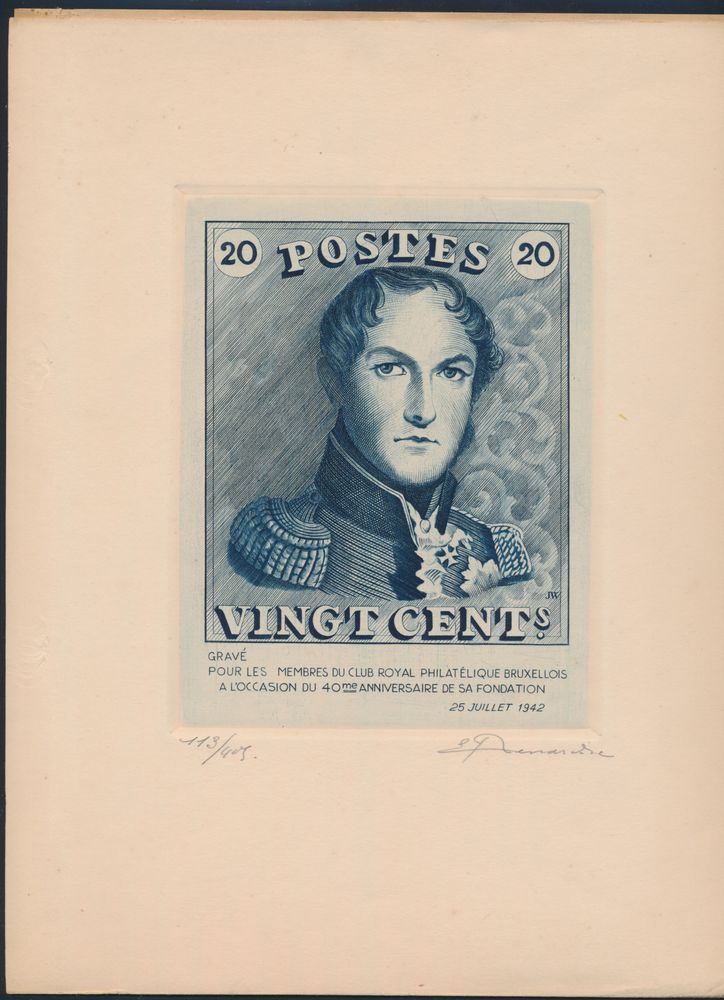665 ng imageN° 2 "20c. dark blue", reprint of mould, guilloched print from sheetlet, vf (OBP €170)(Image 1) (All Images)