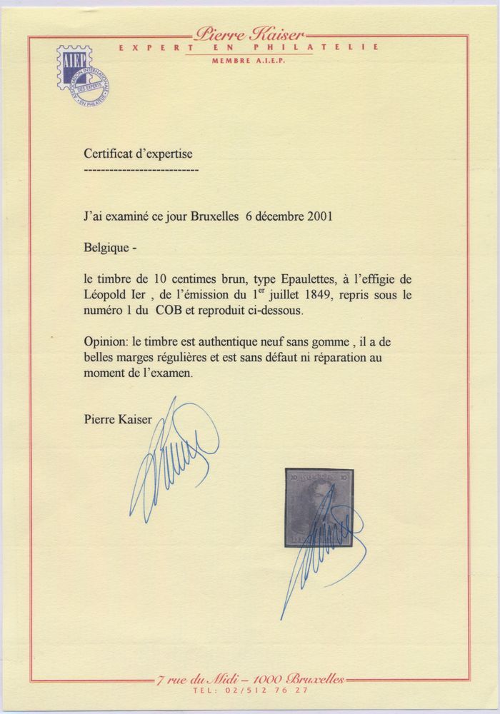 668 ng imageN° 1 "10c. brown", very regular margins, with photo certificate Kaiser (2001), vf (OBP €2,750)(Image 1) (Image 2)