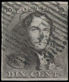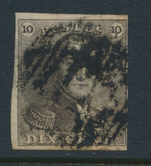 765 0 imageN° 1 "10c. brown", fully margined, with central cancel D.22 Henri-Chapelle, vf (COBA €75)(Image 1) (All Images)