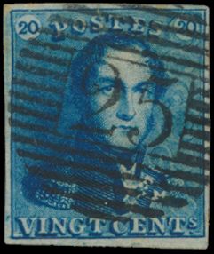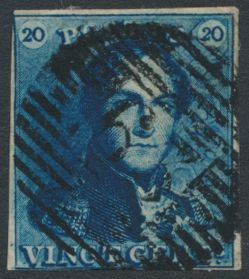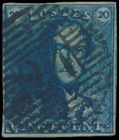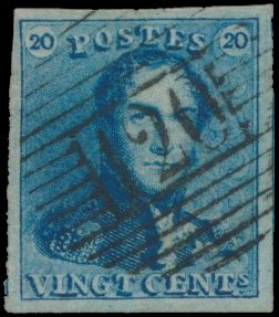 793 0 imageN° 2Ab "20c. deep blue", fully margined, cancel P.4-Anvers, vf (OBP €110)(Image 1) (All Images)