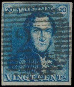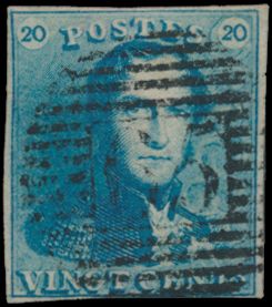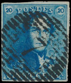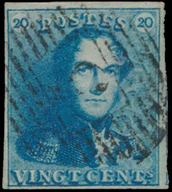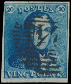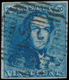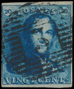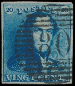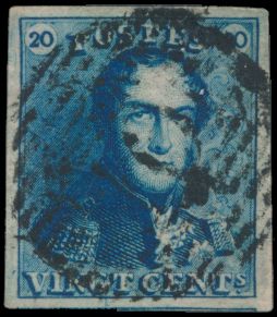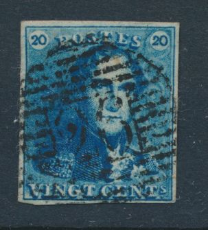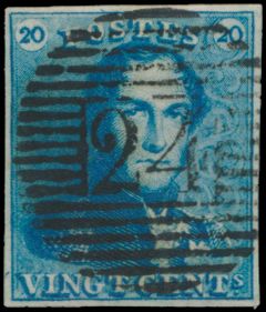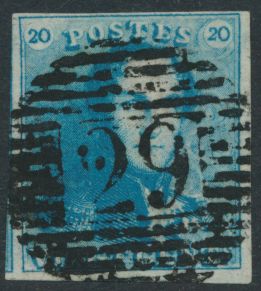 815 0 imageN° 2A "20c. blue", fully margined, cancelled P.24-Bruxelles, cancel only half visible on stamp, vf(Image 1) (All Images)