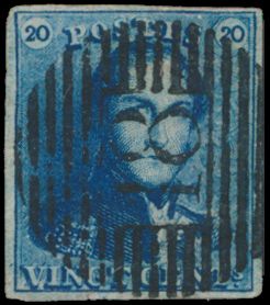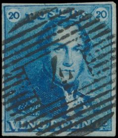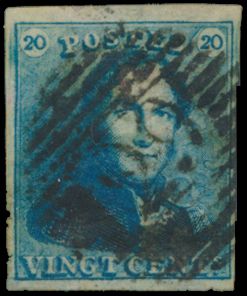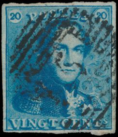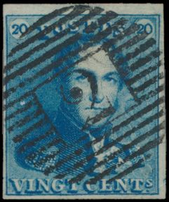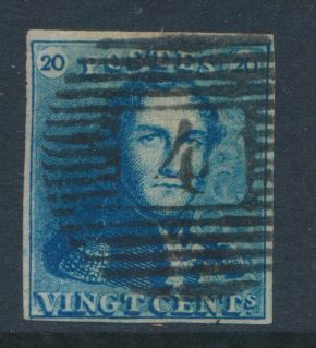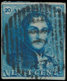 807 0 imageN° 2A "20c. blue", fully margined, with griffes, cancelled P.4-Antwerp, vf(Image 1) (All Images)