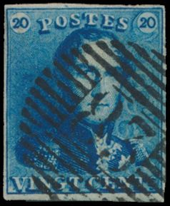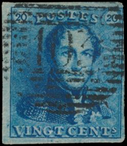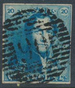N° 2A "20c. blue", fully margined, central cancel P.72-Leuze,
