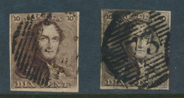 878 0 imageN° 1 "10c. brown" (2x) including 1 fully margined and 1 touched at the top, multiple griffes, for plater, vf/f/to be checked, vf/to be checked.(Image 1) (All Images)