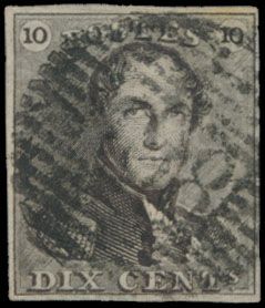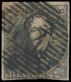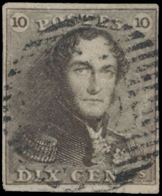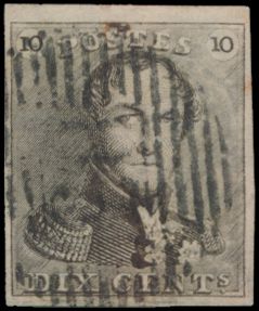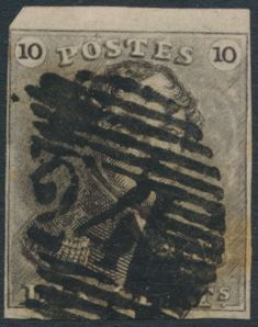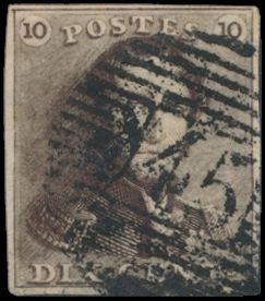 879 0 imageN° 1 "10c. brown", fully margined, with nice margins, light cancel, nice griffe by the "DI" of "Dix", vf (OBP €90)(Image 1) (All Images)