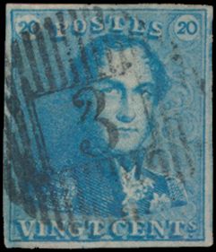 865 0 imageN° 2A "20c. blue", fully margined, with beautiful central cancel D.3-Antoing, vf (COBA €200)(Image 1) (All Images)