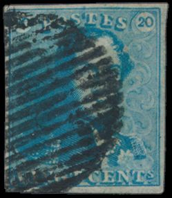 866 0 imageN° 2A "20c. blue", fully margined, with beautiful cancel rural cancel 18-bar, vf (COBA RR)(Image 1) (All Images)