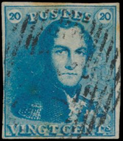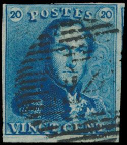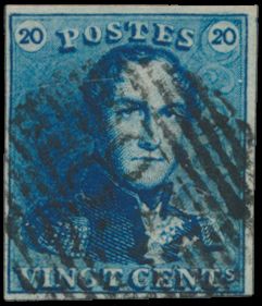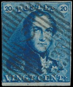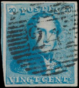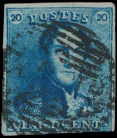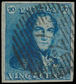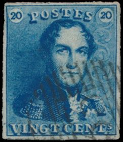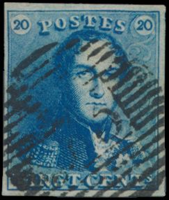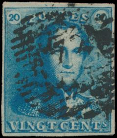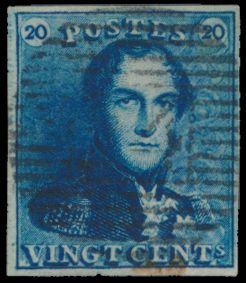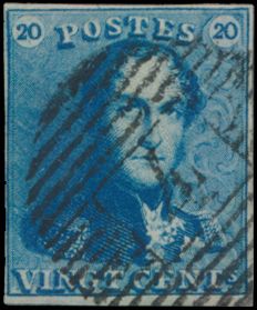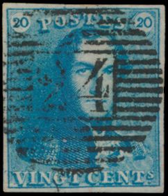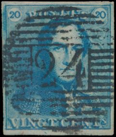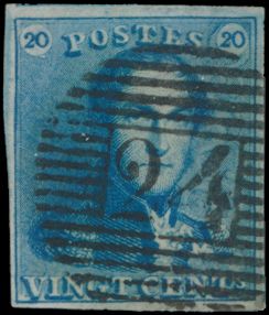 N° 2A "20c. blue", nicely margined, cancel P.24-Bruxelles,