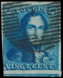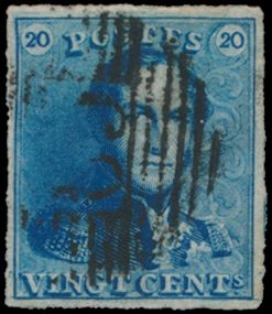 N° 2A "20c. blue", fully margined, position 165 vf (OBP