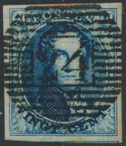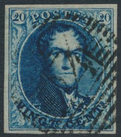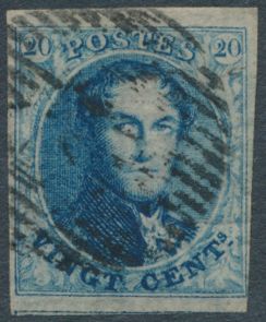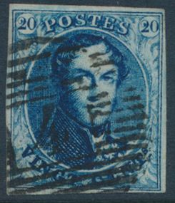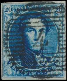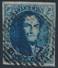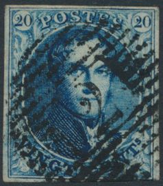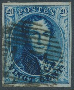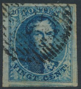 953 0 imageN° 4A "20c. dark blue", fully margined, lower neighbour, cancel P.24-Bruxelles, vf (OBP €70)(Image 1) (All Images)