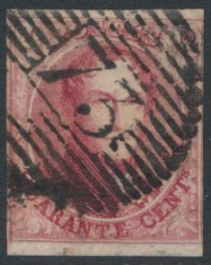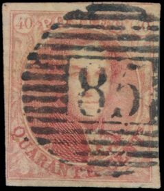 985 0 imageN°5-Cu "40c. carmine pink", slightly touched at top right, with nice cancel P.51-Grammont, with "curiosity extension of horizontal lower frame line at left", nice colour shade, vf/to be checked, vf/to be checked (COBA €75)(Image 1) (All Images)
