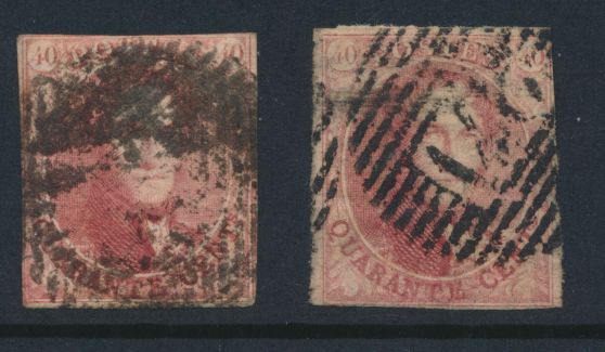 991 0 imageN° 5 "40c. crimson" (2x) both two choice, one cancelled P.148-Walcourt, f/to be checked(Image 1) (All Images)