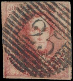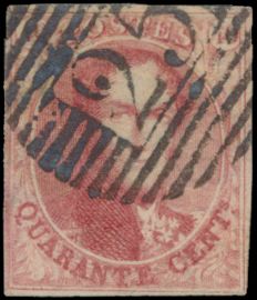 986 0 imageN° 5 "40c. crimson", fully margined with cancel P.73-Liège, vf (OBP €575)(Image 1) (All Images)