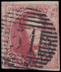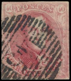 989 0 imageN° 5 "40c. crimson", fully margined, the frame in top left just slightly damaged, with nice cancel P.123-Verviers, vf (OBP €575)(Image 1) (All Images)