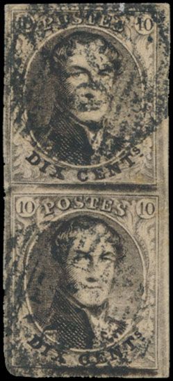 998 0 imageN° 6 "10c. brown" in upright pair, fully margined, with very heavy griffes in margins, spectacular, watermark is very difficult to see, vf(Image 1) (All Images)