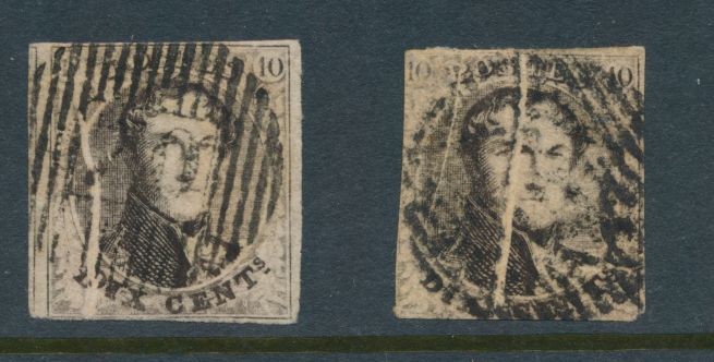 996 0 imageN° 6 "10c. brown", fully margined with upper neighbour, many scratches in image of stamp (including horizontal scratch by X and CE), but also in upper margin, plate IV, vf(Image 1) (All Images)