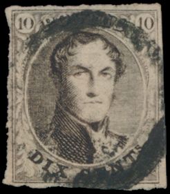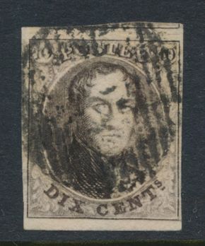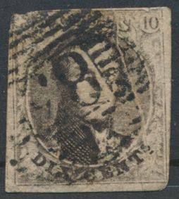 999 0 imageN° 6B "10c.brown", fully margined, vertically ribbed paper (1854), nicely framed circular cancel, vf (OBP €80)(Image 1) (All Images)