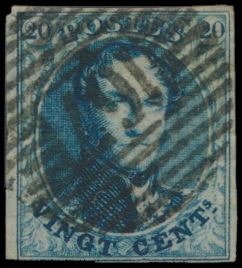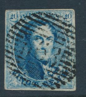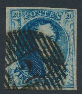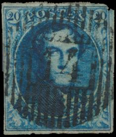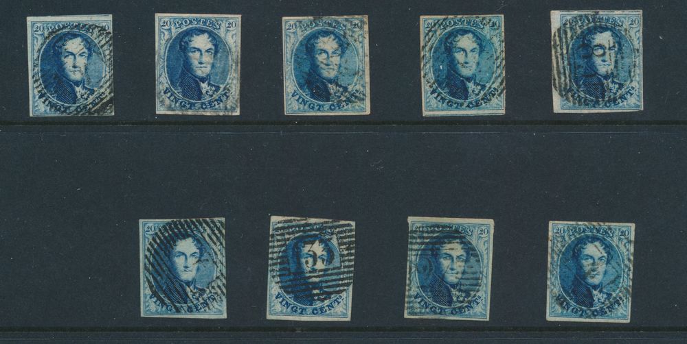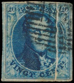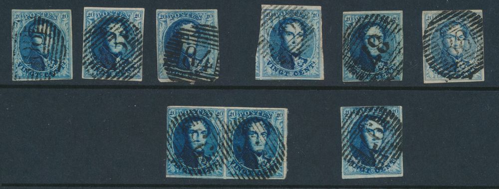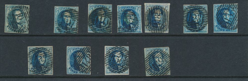 1086 0 imageN° 7 "20c. blue", fully margined, cancelled P.104, P.107, P.110, P.112, P.118, P.128, P.133, P.142, P.148, P.150 and P.169, vf (COBA €89)(Image 1) (All Images)