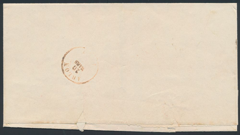1096 image1857 N° 7 "20c. blue", on letter without content, cancelled P.126-Virton, dated 20 March 1857, to Arlon, letter has manuscript "9 g/2", which is second weight class and "20c." should be franked, "PP" (2x) in frame (parallelogram) red, vf(Image 1) (Image 2)