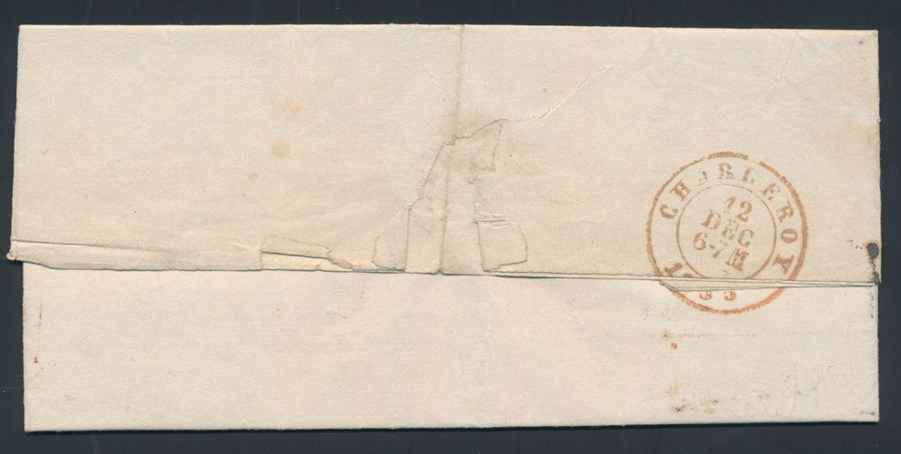 1093 image1855 N° 7 "20c. blue", fully margined with right margin and 3 neigbour, on letter with contents, cancelled P.27-Chimay, dated 11 December 1855, to Charleroi, letter heading is Baileux, vf(Image 1) (Image 2)