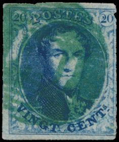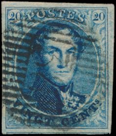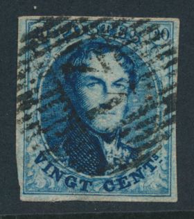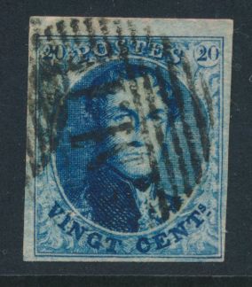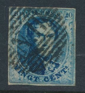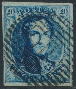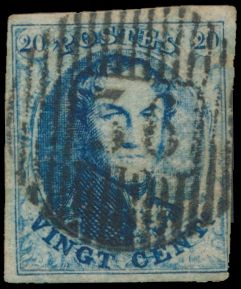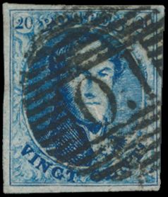 N° 7 "20c. blue, fully margined, with ambulantory cancel