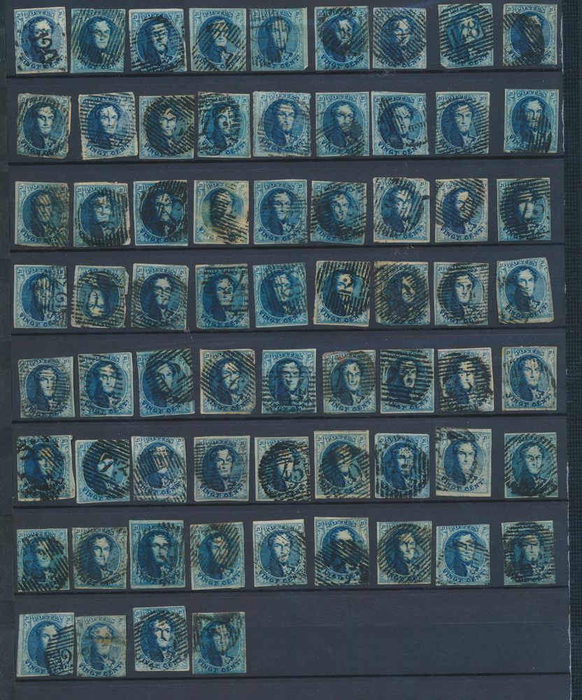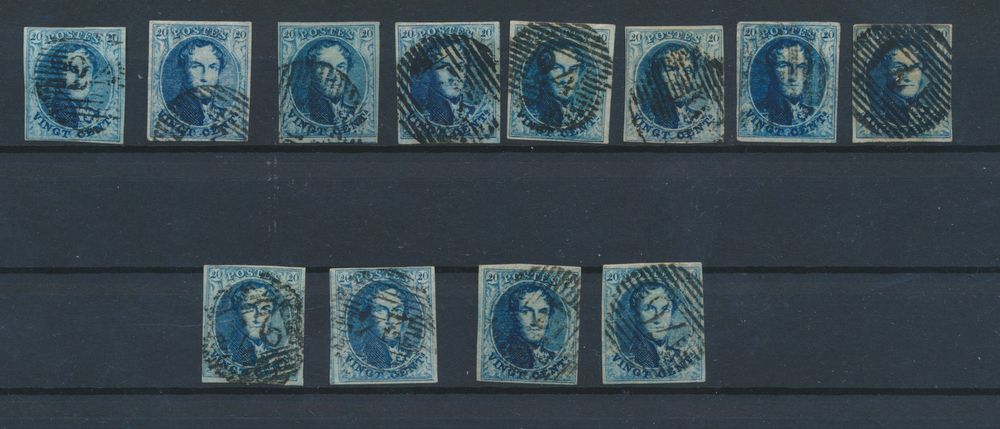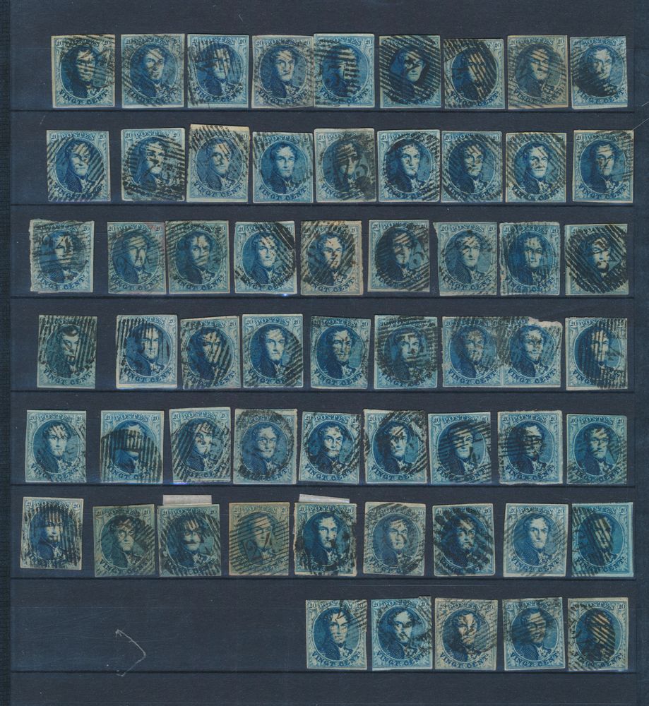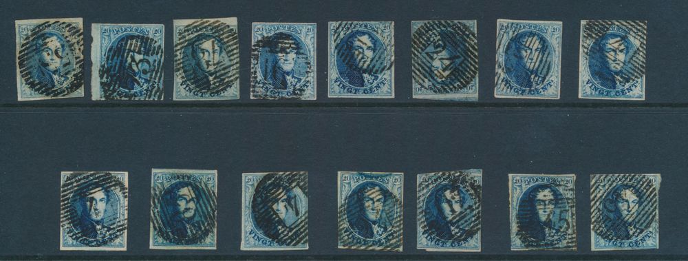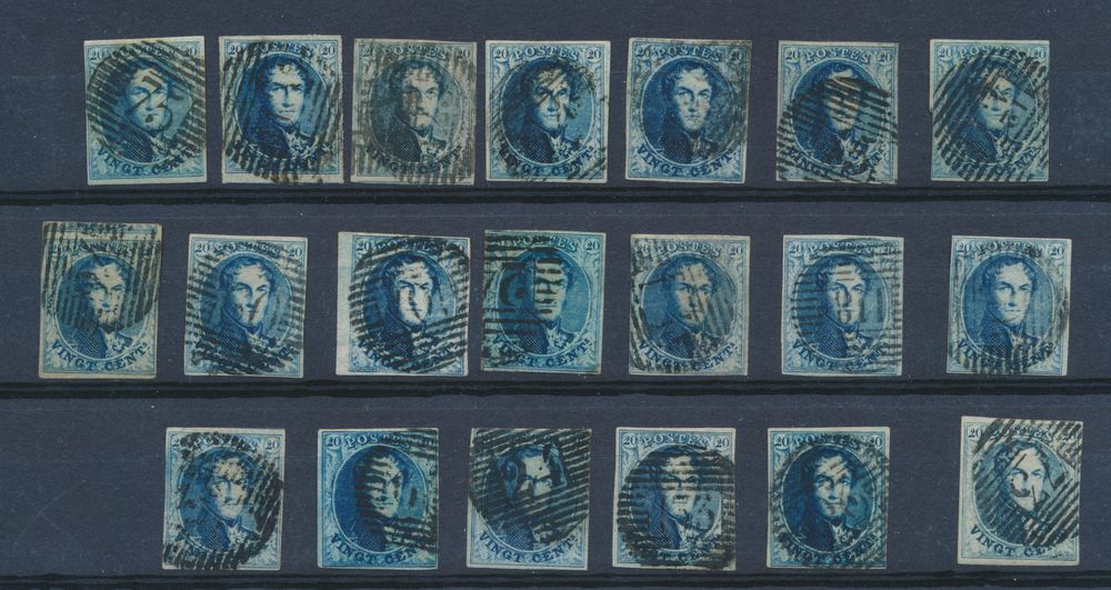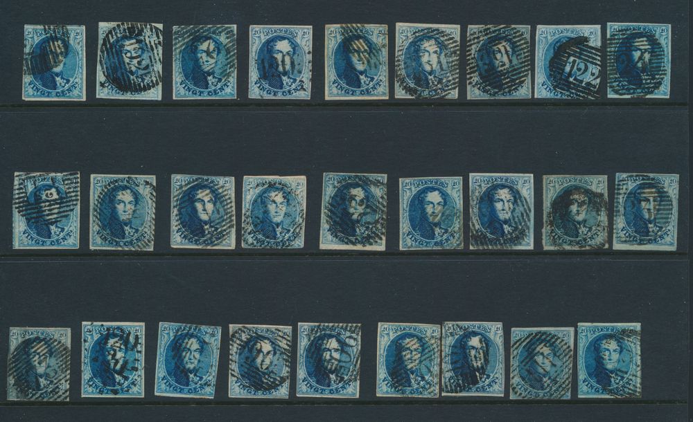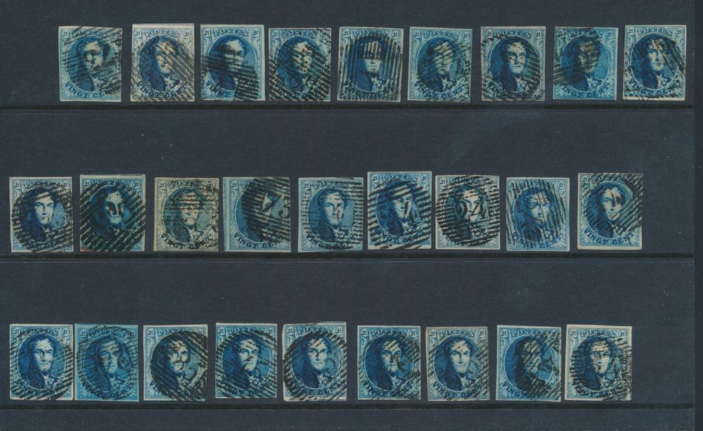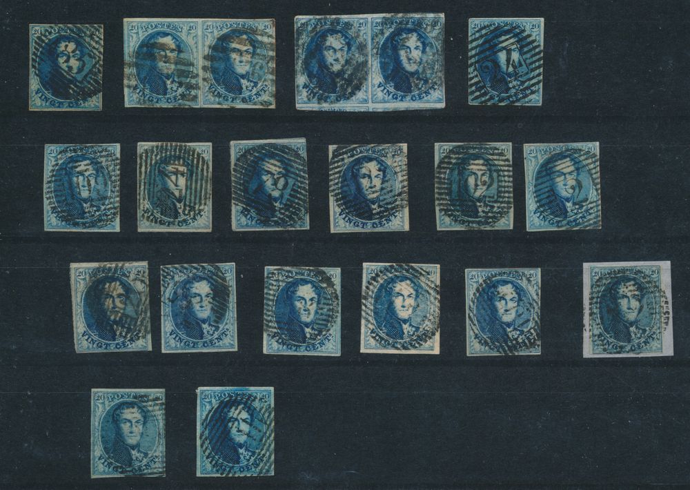 N° 7 "20c. blue" (59x), to be checked, with some cancels and