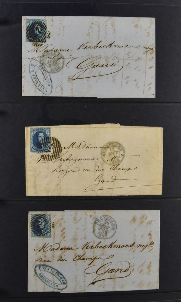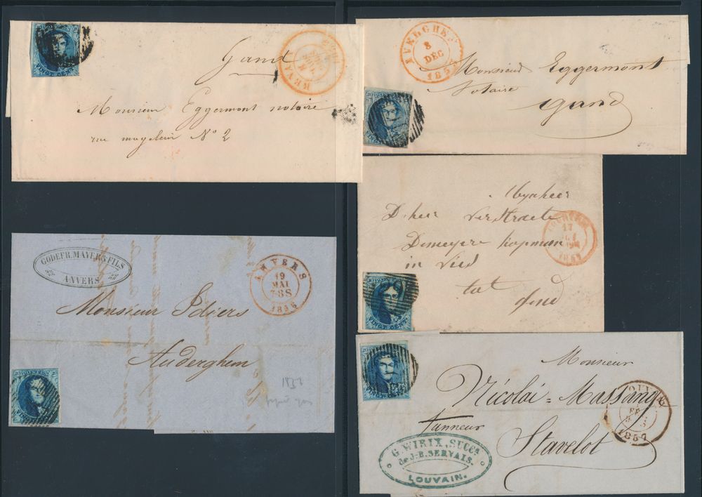 1852/1957 N° 7 "20c. blue", collection of 8 letters, from