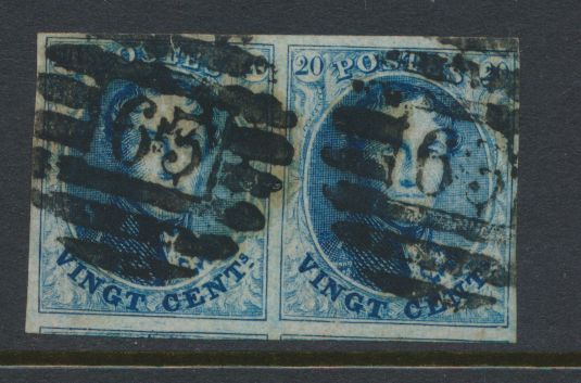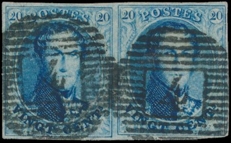 1224 0 imageN° 11A "20c. blue", nice fully margined pair, with huge height difference between stamps, with central cancel P.4-Anvers, vf(Image 1) (All Images)