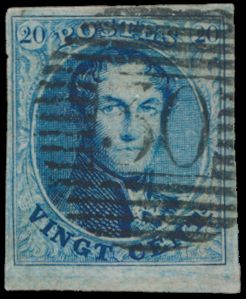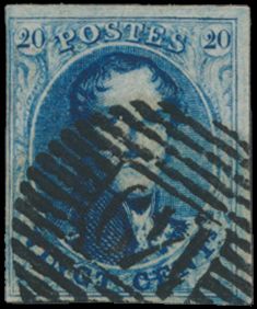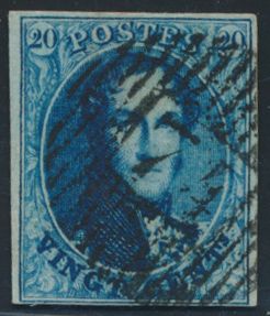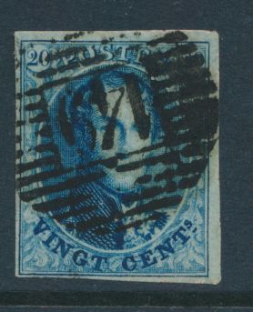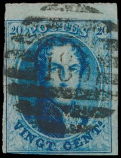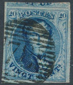 1225 0 imageN° 11A "20c. blue", fully margined with extended lower margin (several griffes in lower margin), cancel P.30-Couvin, vf(Image 1) (All Images)